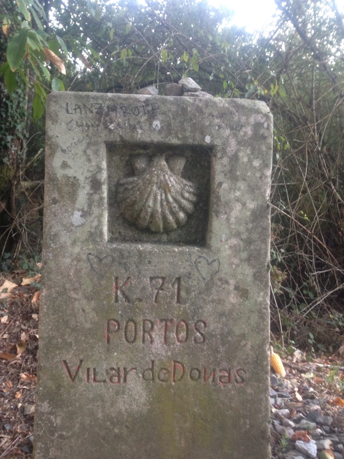 We ended our walk today at 1:00PM in Melide only 52km (32mileS) outside of Santiago. Looks like I will likely make it into Santiago on Saterday the 3rd of Oct. Coming to grips with the fact that I just might complete this journey. Today’s picture is of km marker 71 as that was an important year for me and many fellow readers. Pic was taken at first light after over 2 hours of walking. These km markers are all along the Camino and in La Coruna they are at each half km.