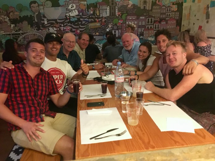 Dinner last night at YES was excellent and a great time. 20 people of course all younger from all over the world. Many Canadians, Brits, several Asians, and a 28 year old woman from Brazil. She is taking a break from grad school in Tennessee and just completed the Camino Portuguese. In addition to being fun, she was full of great advice about the walk we are about to do. I think she qualifies as my first Camino angel. That is defined as someone who shows up unexpectedly with useful or critical information to make the walk better. Of course I know that this time there is another angel looking out for me as well.