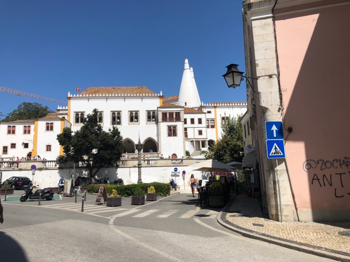 In the afternoon, we visited the Historic Center of Sintra and the National Palace with its two towers that look like giant tanjeens over a warming pot of lentils. We toured the residence of the last royals in Portugal. The last members of the royal family having left in 1910 when the dictatorship took over. Like many old castles, it is a warren of tiny rooms with low ceilings and 130 stairs all designed for residents not waiting for a knee replacement.