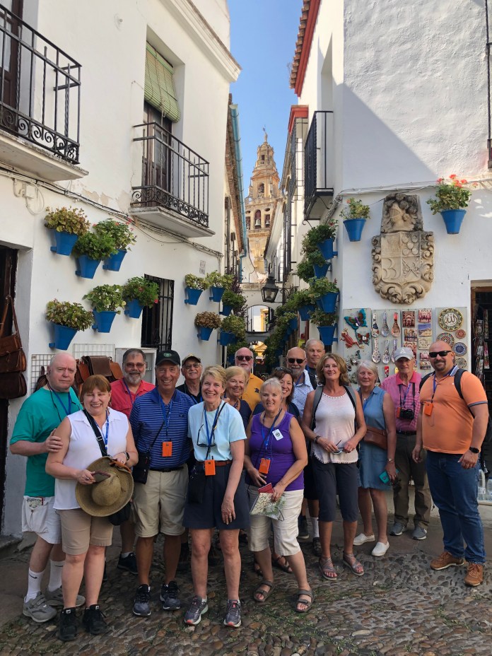Today’s group shot on the Avenida denlas Flores with the bell tower in the background. The original minaret is inside the bell tower.