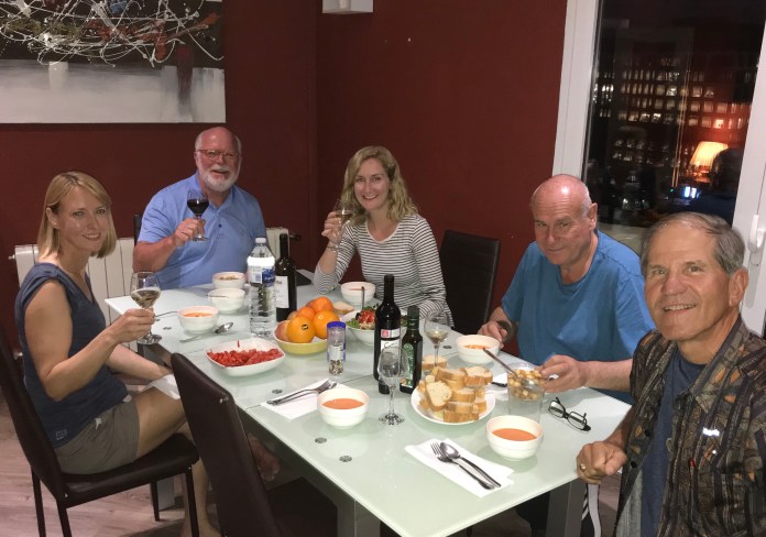 One of my favorite quotes about the Camino is, “One who has not walked the Camino cannot explain it, one who has not walked, cannot understand it”. This my friends is so very true. Last night over gazpacho, salad, bread and wine many stories were told to an appreciative audience until nearly 2:00 AM. It was grand. Mostly because there seem to be no memories of the heat, the discomfort, the effort involved in accomplishing such a task of walking 500 miles over a month. Oh there is mention of some of those things but most often with great humor – and a deep pride. This is an accomplishment that cannot be taken away. The pleasure in sharing it with those who truly understand is sublime.
