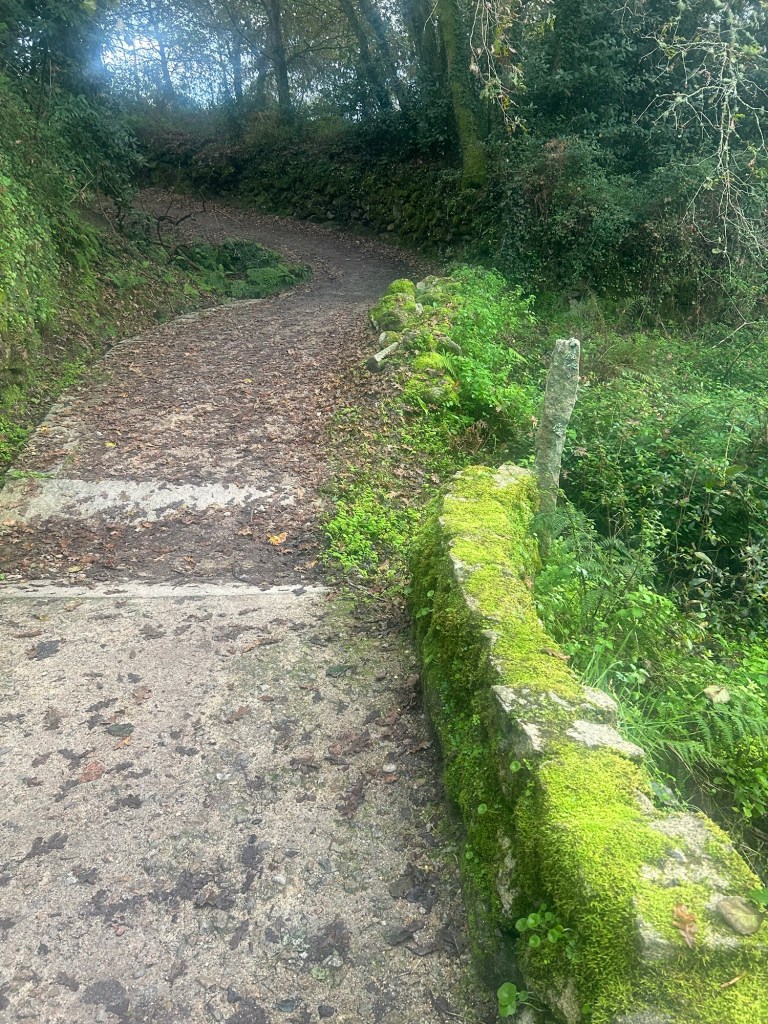 Once out of town we came across an original road sign for the Roman road 19 first built in the year 300 and we were directed into the wooded area along that road toward Caldas de Reis.