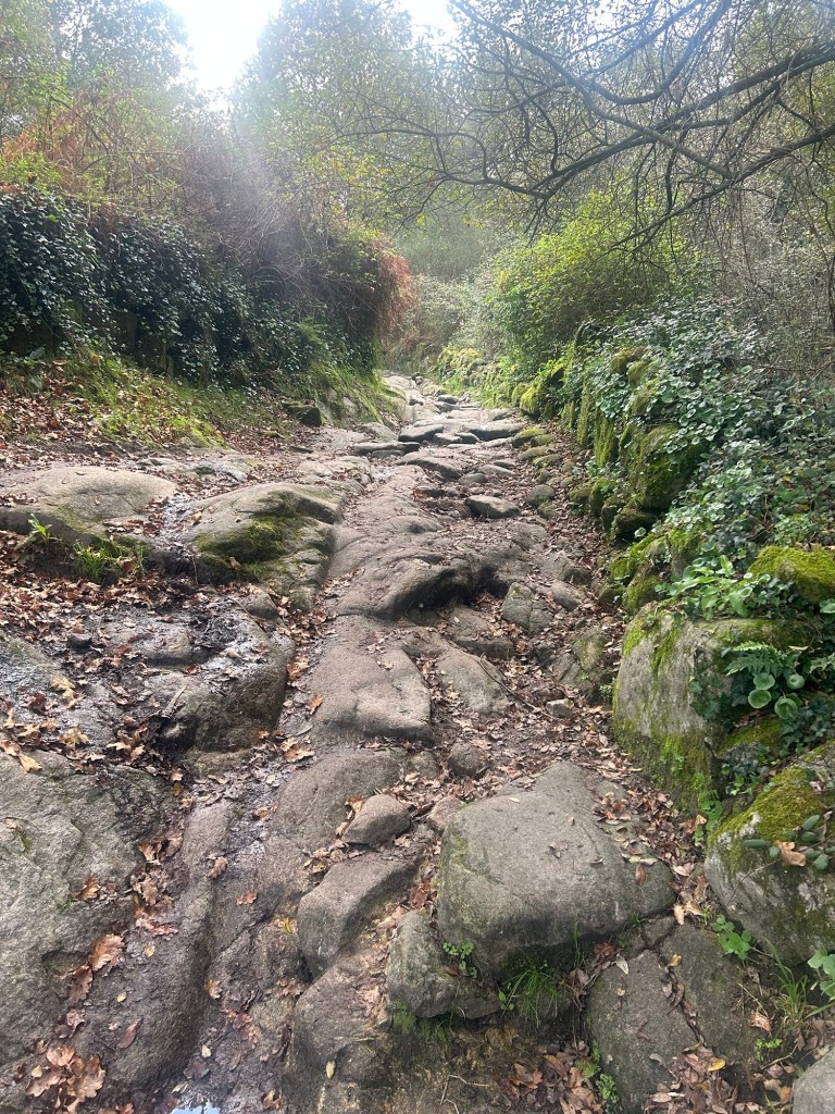 Departing any town on the Camino Portugués means climbing up stones. This went on for miles. Some were paved roads, some dirt, and some were washed out piles of rocks where you had to carefully select your stone to stone path and keep your balance.