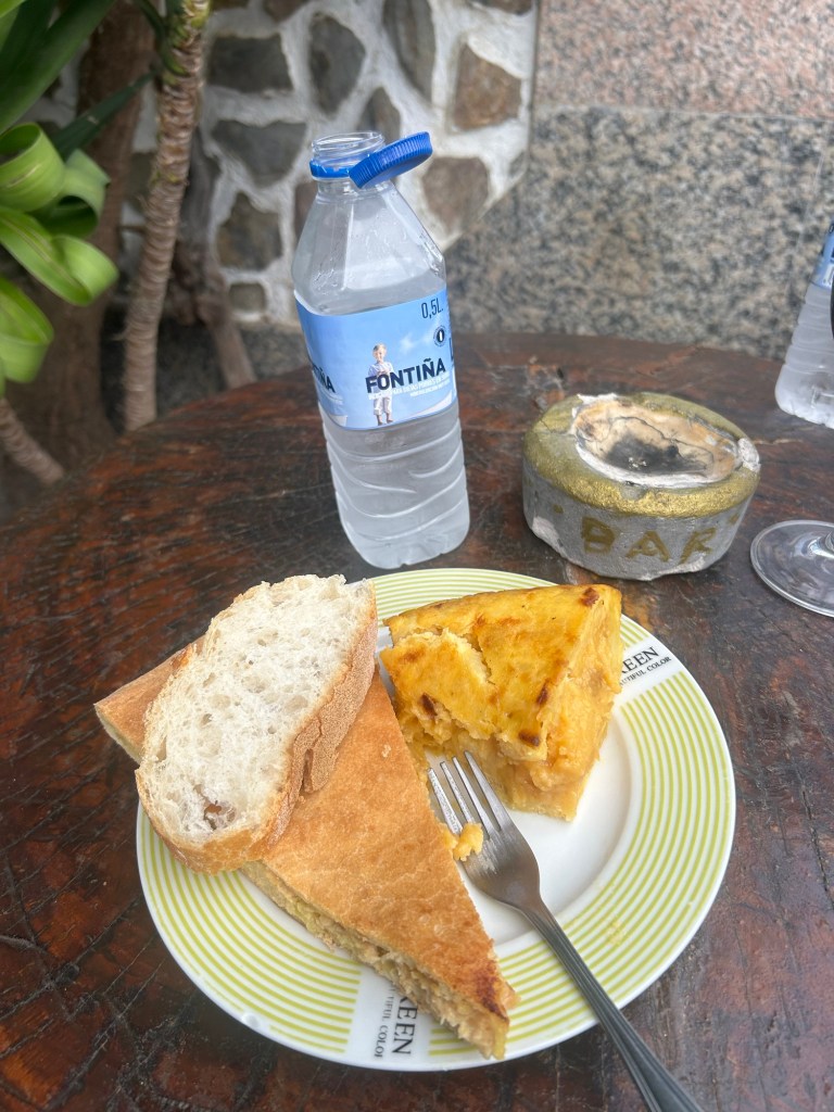 I regret that yesterday’s post was so short but the walk out of Vigo to Arcade was too much for one day. I do try to never focus on the negative aspects of the Camino but it is not a secret to my gentle readers that this is difficult work. Extremely rewarding and spiritually renewing but a physical challenge all the same. Today’s route was a mere 12-14 kilometers but had some very tough climbs (and decents) but was about the right amount of challenge and reward. I logged over 22,000 steps on my Fitbit in our 5 hours of walking today but we got here just as the rain started and were able to shower, have a full lunch, and get our laundry done in time to blog. All good.
