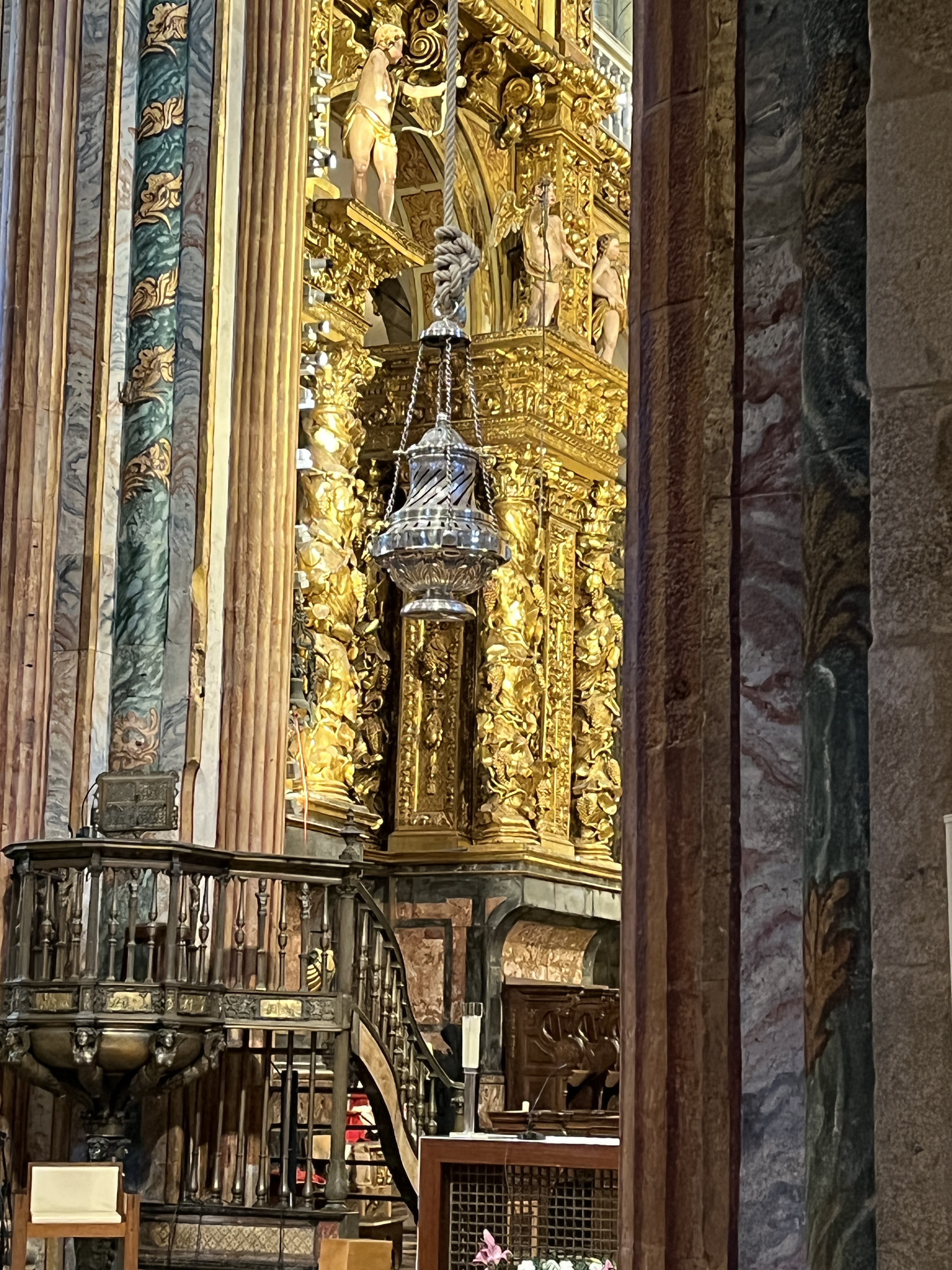 The Pilgrims Mass at noon every day. Magnificent Cathedral.