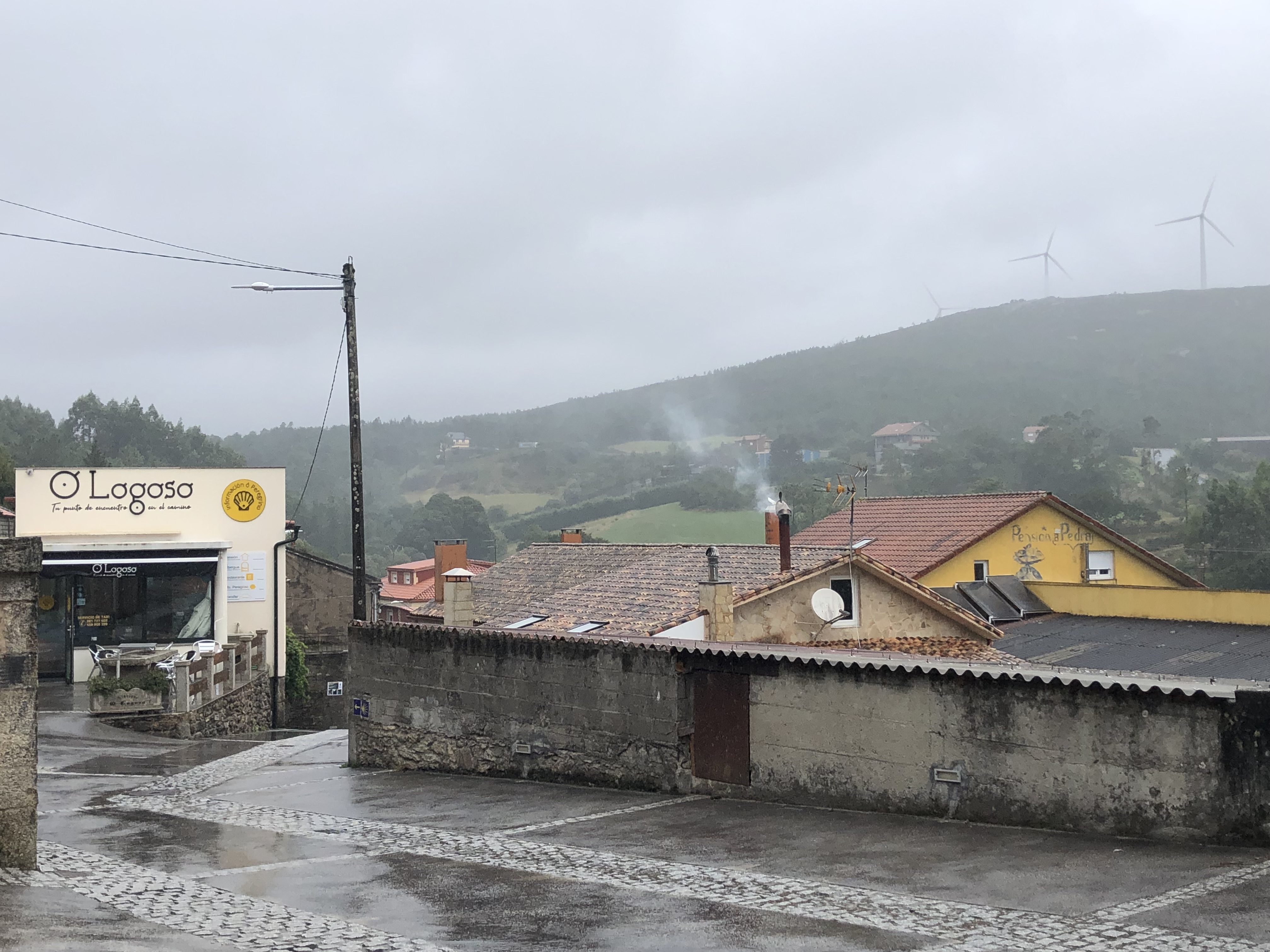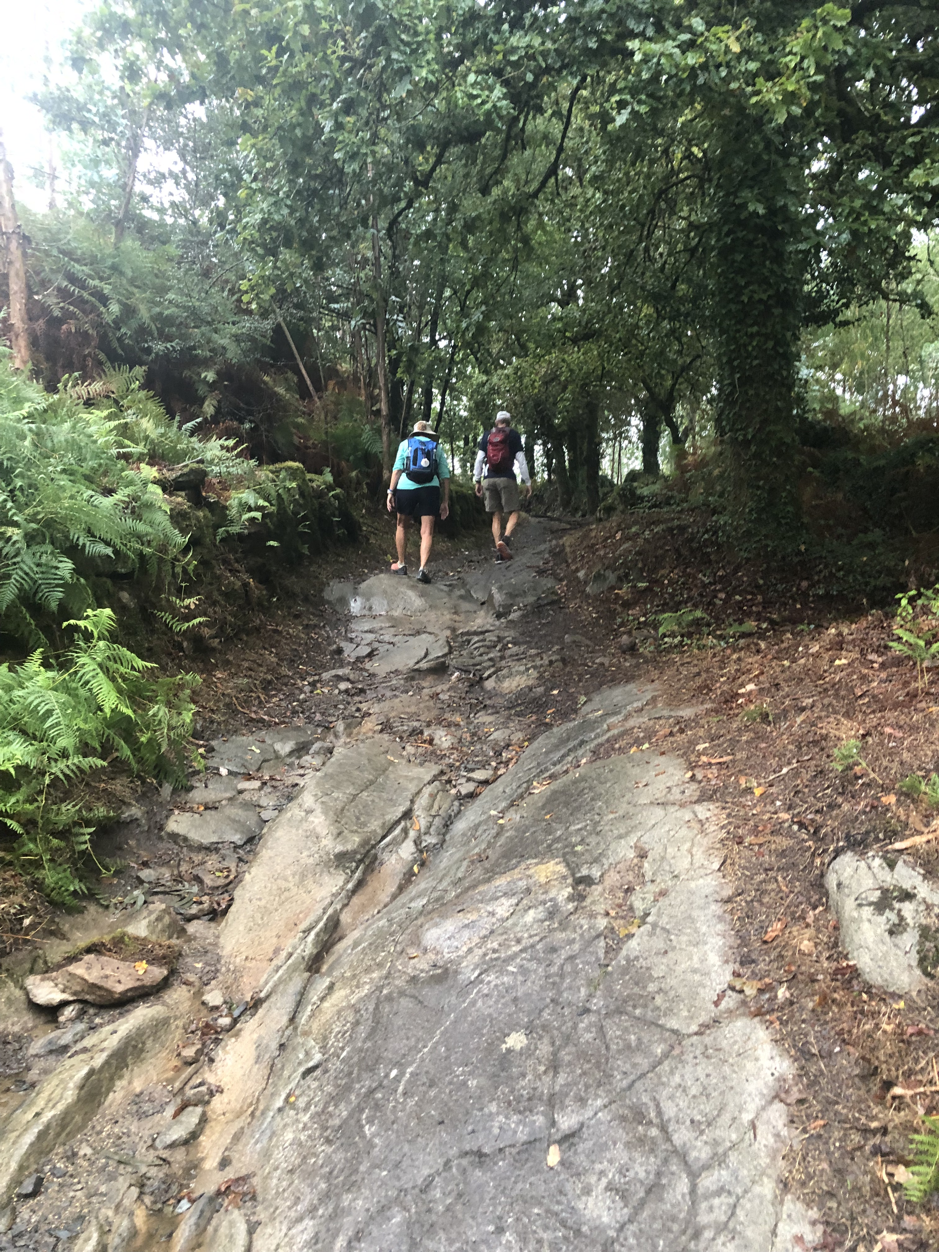 We did the 17 Km today in just over 5 hours with a couple breaks along the way. One for breakfast about 10 Km in and another to replenish water and stretch my IT bands which were suffering from the down hills. I will send some photos of the peaks we climbed over today. Hard work but necessary to get where we are going. My Colorado friends are great company and used to walking in hills. They have been very patient with me as I stop often to breathe. Frankly,I do not know how I have gotten this far but for their support and my excessive pride. The good news is that we have our longest days behind us which means more rest each day as well as less walking. I might just make it to Muxia.
